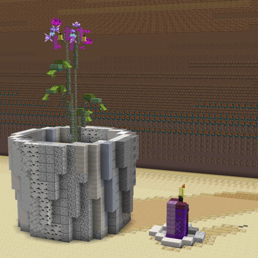 Constructions du Spawn pour le serveur Sanctuary, mettant en scène un arbre majestueux au centre. Cette création combine éléments naturels et architecture fantaisiste pour créer un point de départ accueillant et impressionnant pour les joueurs.
