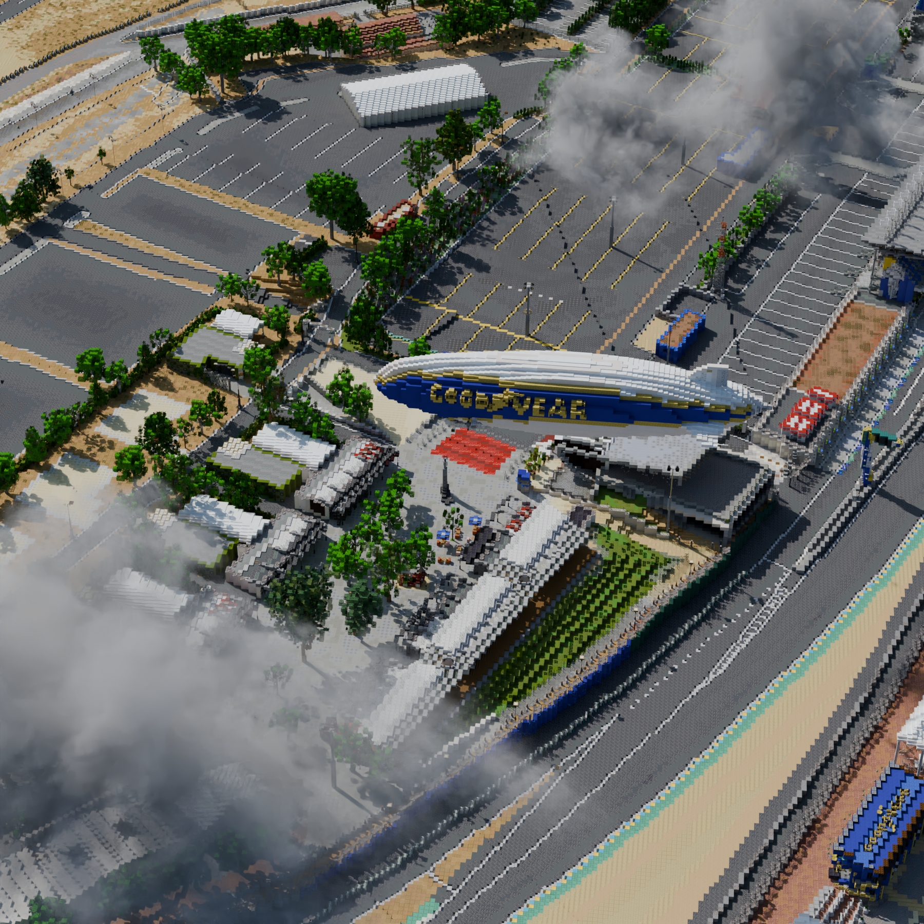 Reproduction du circuit Bugatti, un circuit automobile emblématique situé au Mans, France.